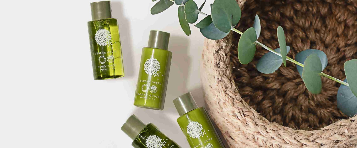 Geneva Green to przełomowa kolekcja kosmetyków hotelowych, która łączy włoską jakość z pionierskim podejściem do zrównoważonego rozwoju. Jako pierwsza na rynku marka oferuje kompletną linię amenities w opakowaniach wykonanych w 100% z plastiku pochodzącego z recyklingu post-konsumenckiego (r-PET), redukując emisję CO2 o imponujące 83-85%.